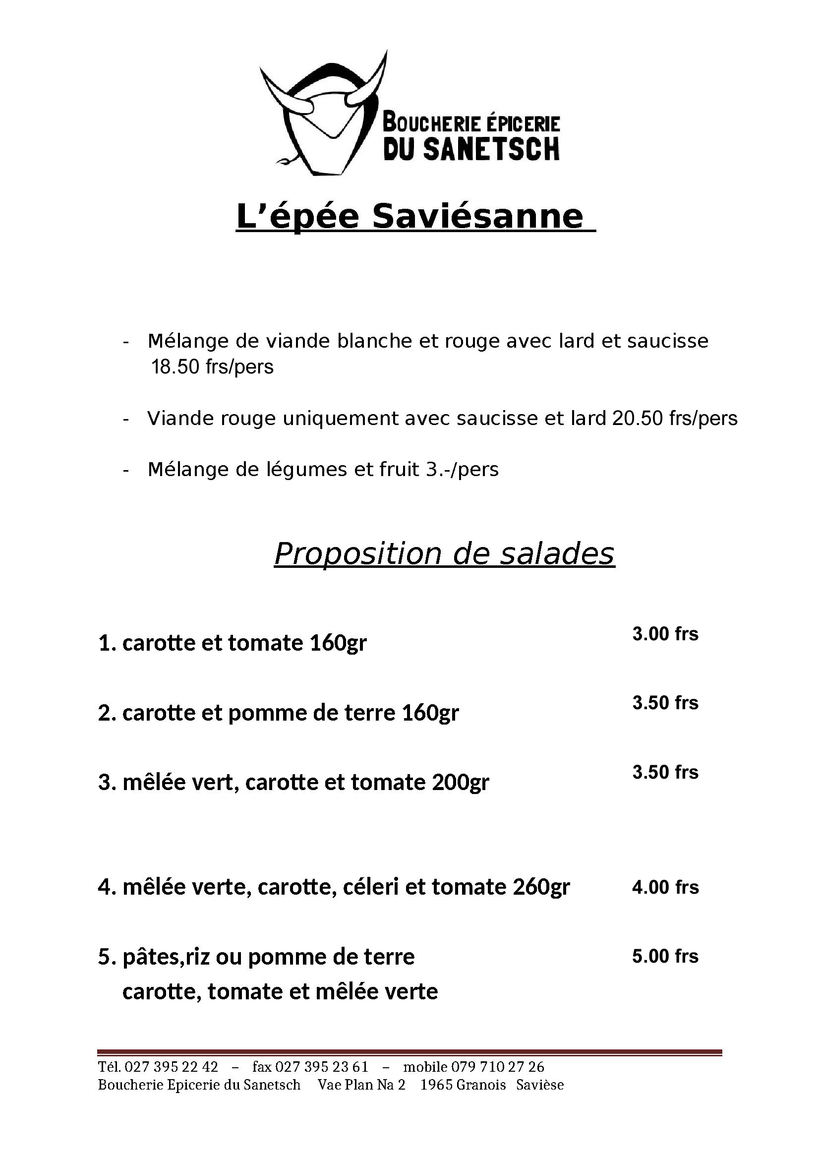 Vivez une expérience nouvelle qui changera de vos traditionelles grillades et découvrez notre « épée saviésanne ».